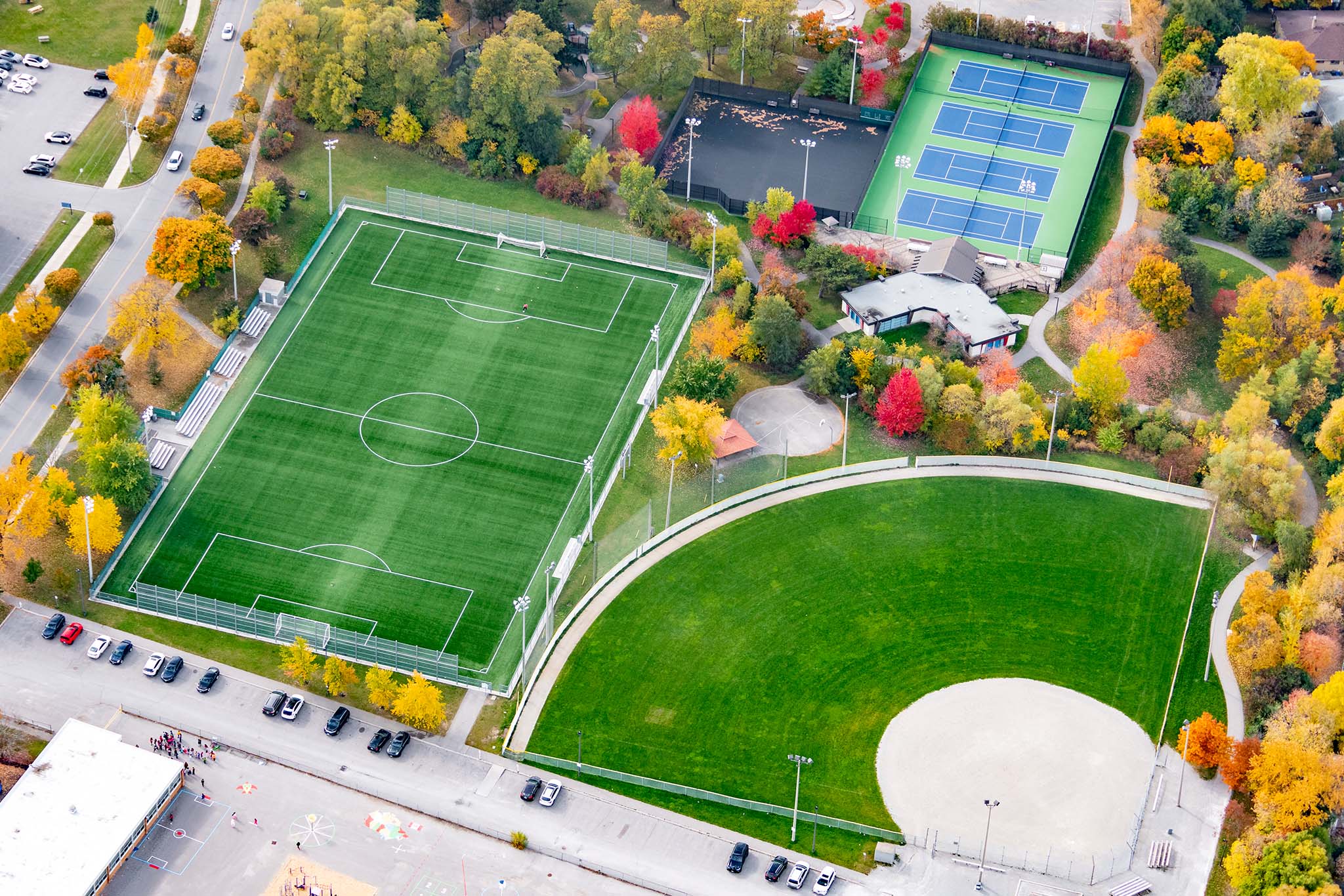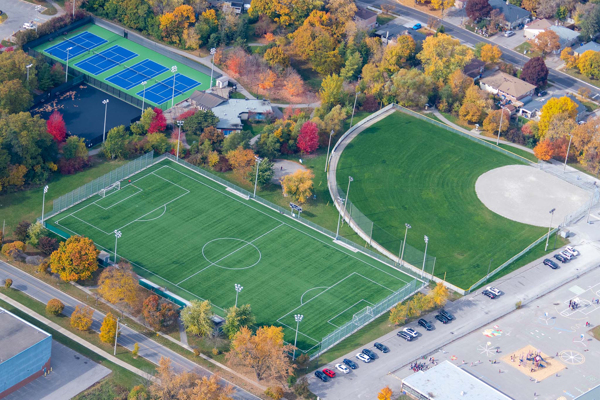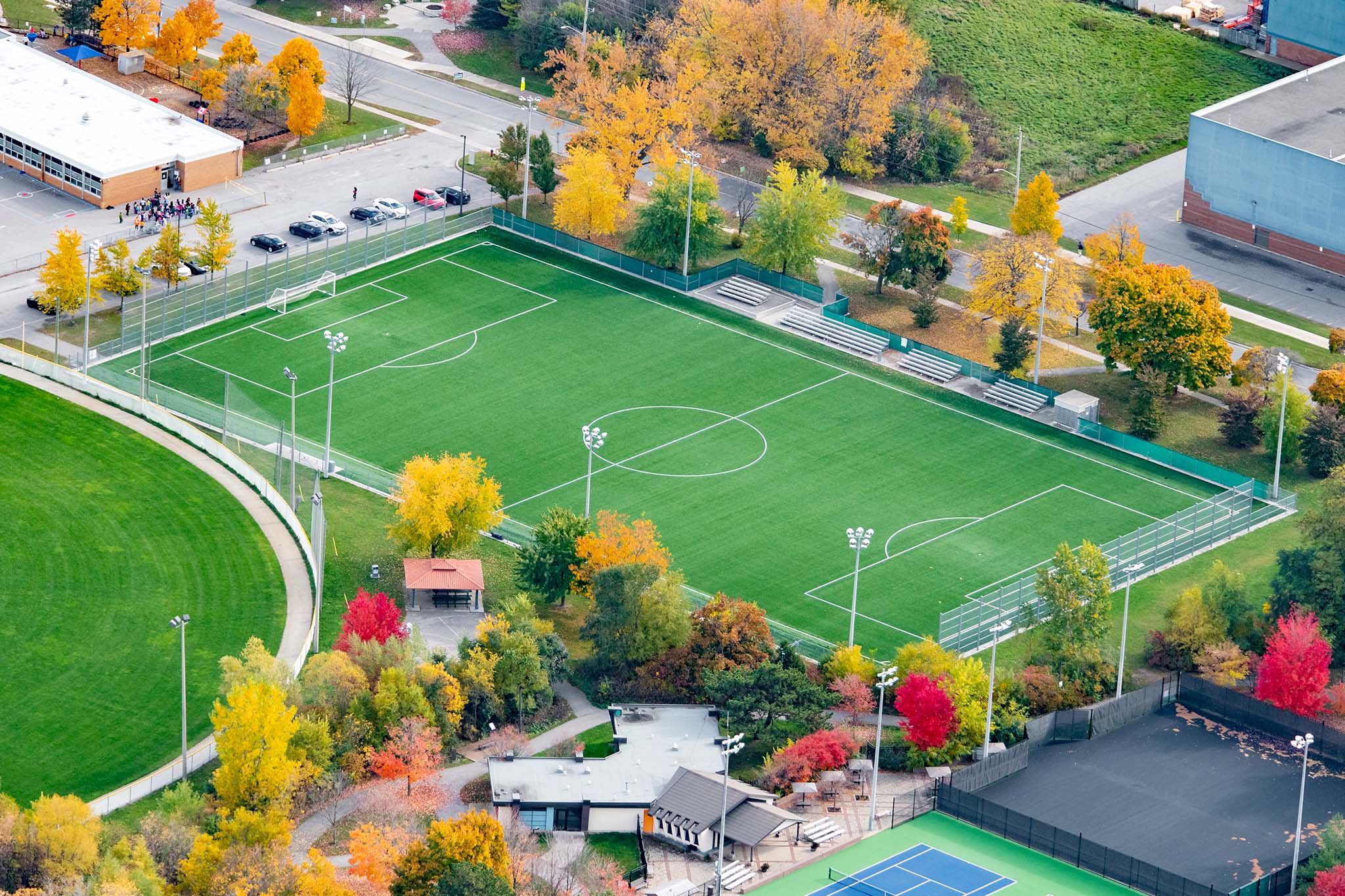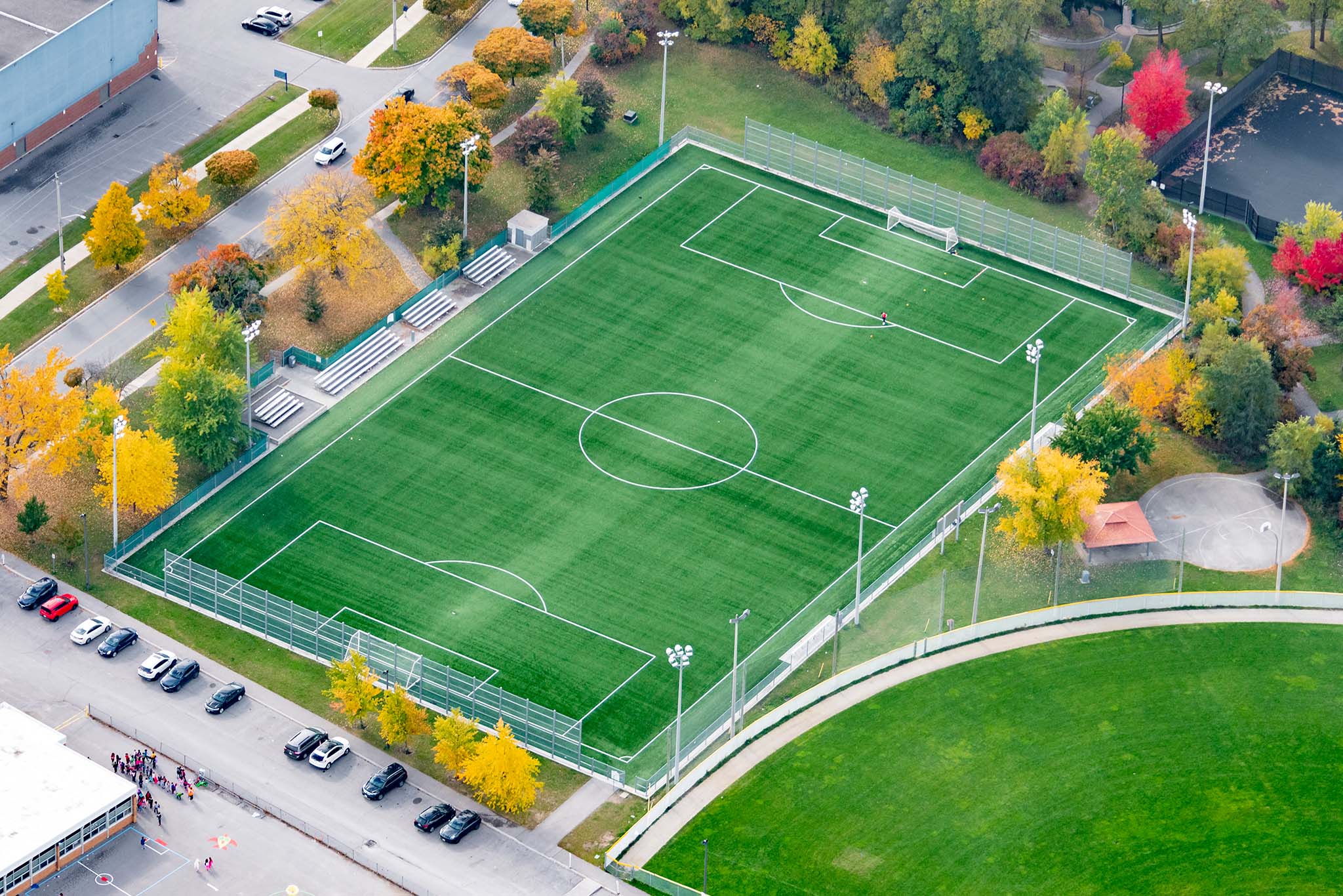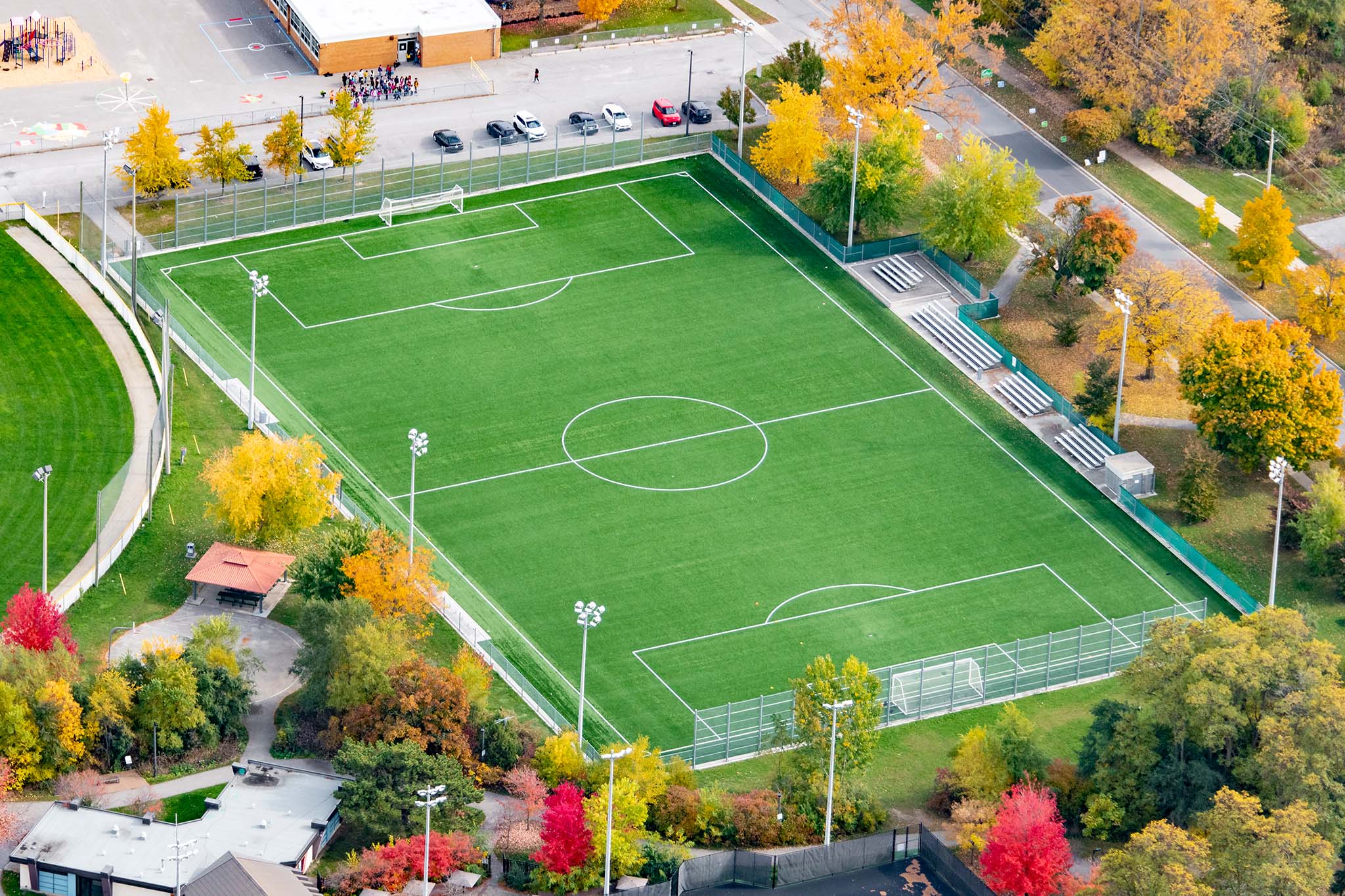 Our team provided installation services for the City of Richmond Hill. After the old synthetic turf had reached its end of the cycle, we incorporated a sustainable sports field reclamation initiative, resulting in the old turf field being repurposed. This project included the installation of FIFA Quality Pro Compliant synthetic turf on a performance pad and TPE infill and custom lines for Soccer. Crosby Park is Richmond Hill’s first fully accessible park.