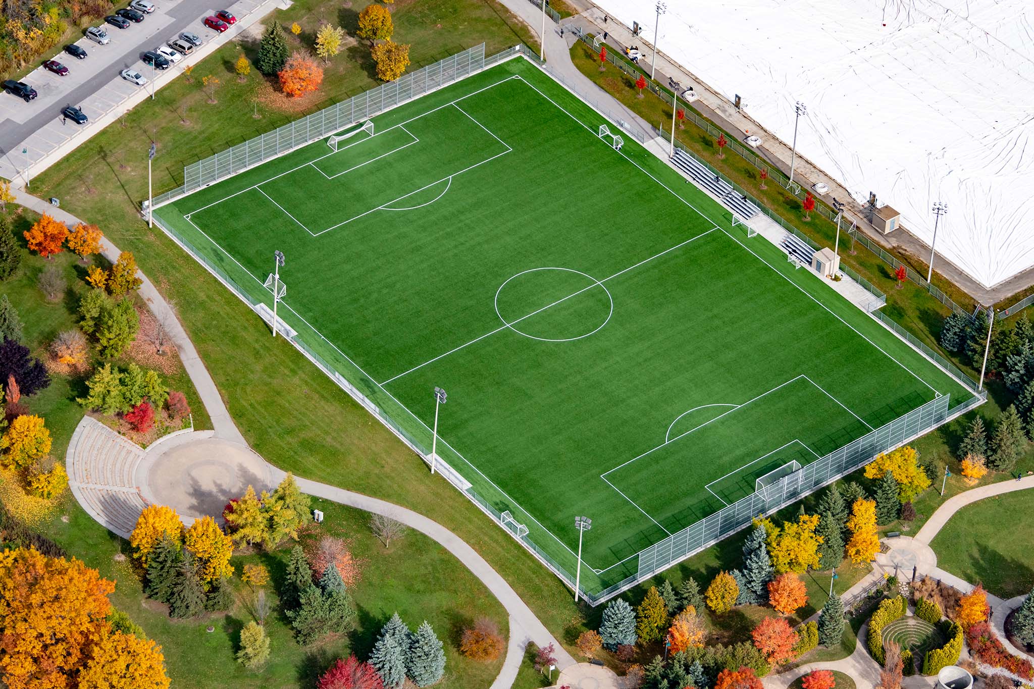 Our team provided installation services for the City of Richmond Hill. After the old synthetic turf had reached its end of life cycle, we incorporated a sustainable sports field reclamation initiative, resulting in the old turf field being repurposed. This project included the installation of FIFA Quality Pro Compliant synthetic turf on a performance pad and TPE infill and custom soccer lines at the West field complex.