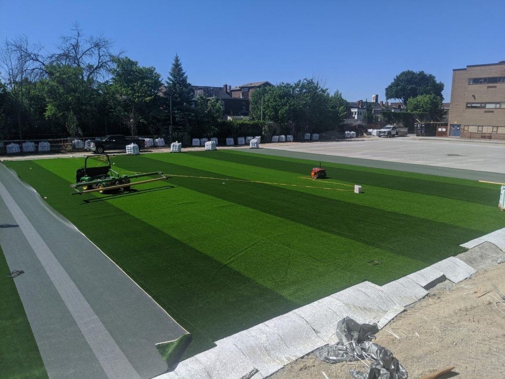 Our team provided installation services for the Toronto District School Board. This project included laser grading of the dynamic aggregate base, installation of a performance shock pad, custom synthetic turf, and Envirofill infill.
