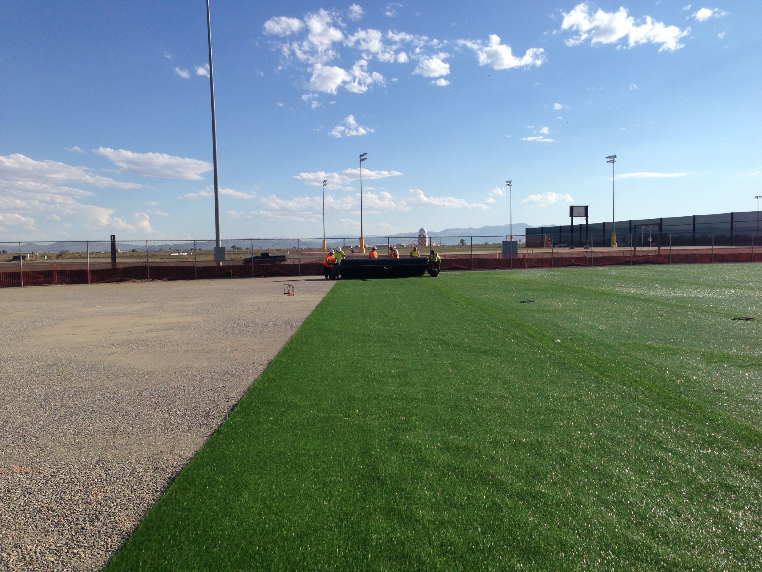 Our team provided custom synthetic turf installation services, as part of a US Navy MWR project in Fallon, Nevada. This project included the installation of custom synthetic turf and was our first baseball field installation.